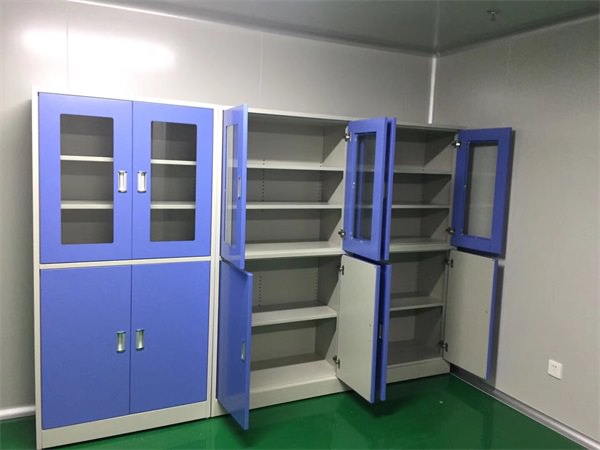樣品柜可根據客戶的使用要求,設計可調節的活動擱板,可以根據所用物品的高度進行上下調節